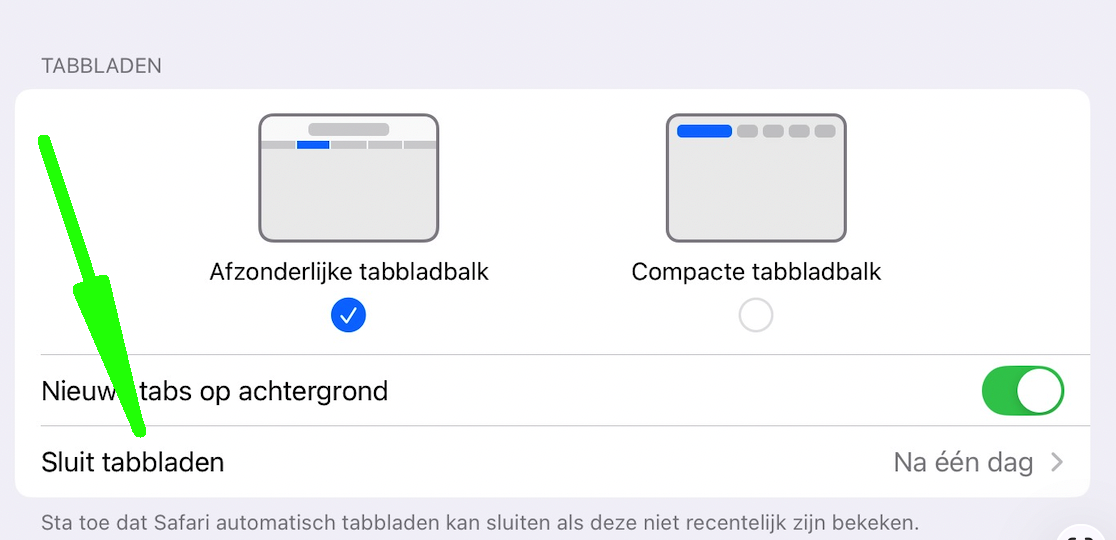 Kies in het volgende scherm na hoeveel tijd de tabbladen gesloten moeten worden.