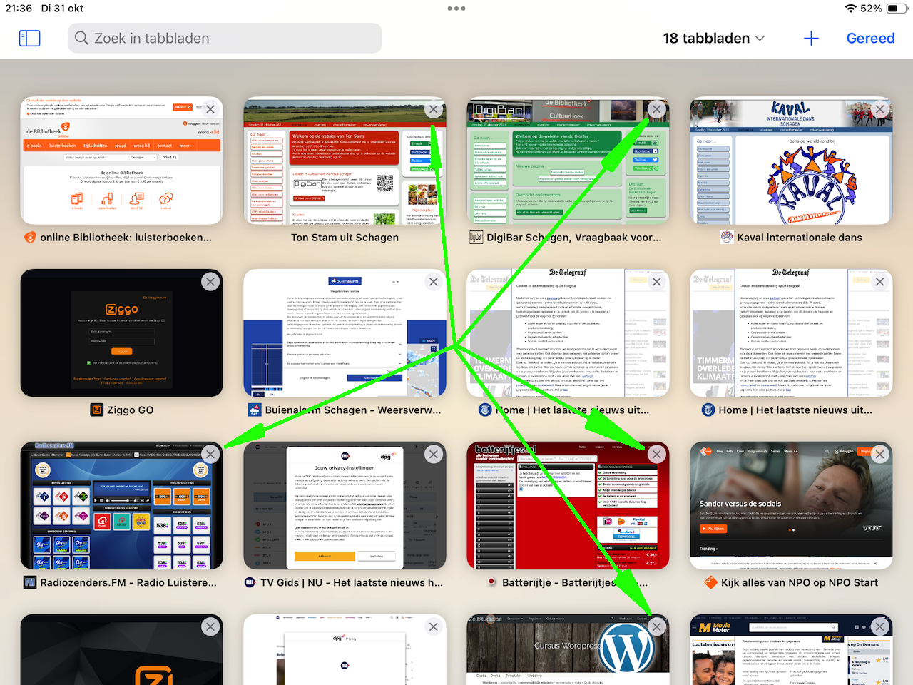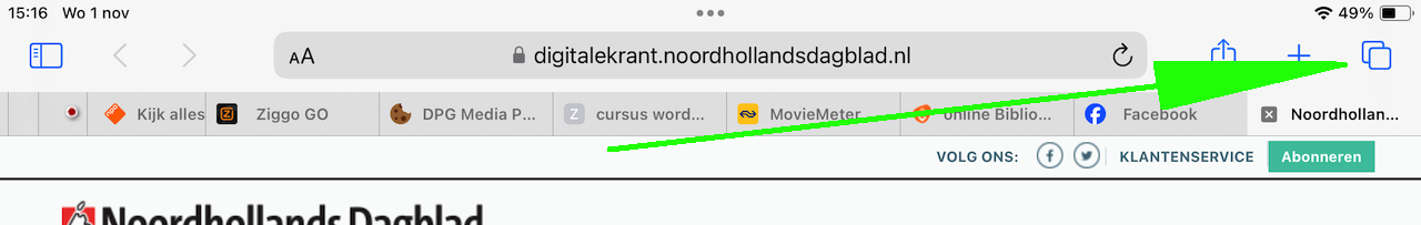 In het volgende scherm zie je alle tabbladen die open staan.